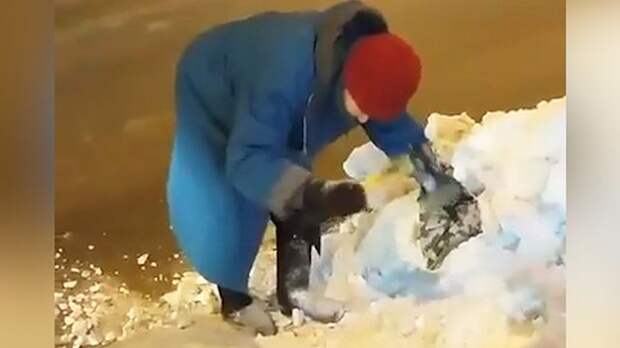 Прохожие запечатлели, как пенсионерка топором прорубала лед на пешеходном переходе.