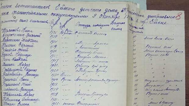 Также опубликован список воспитанников детского дома, которые были убиты. Там содержатся фамилии детей, даты их рождения и даже национальность. Примечательно, что в числе убитых оказались два ребенка, у которых в графе "национальность" написано "немец".