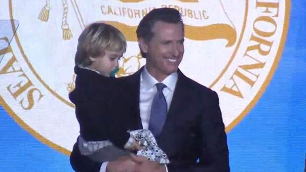 Двухлетний сын нового губернатора Калифорнии Гэфина Ньюсома привлек внимание публики на торжественной церемонии инаугурации. Сонный малыш сначала сидел на руках у политика и едва не уснул во время речи своего отца.