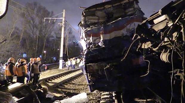 В настоящее время силами МЧС России проводятся работы по ликвидации последствий столкновения электрички Москва — Вязьма с пассажирским поездом Брест — Москва.