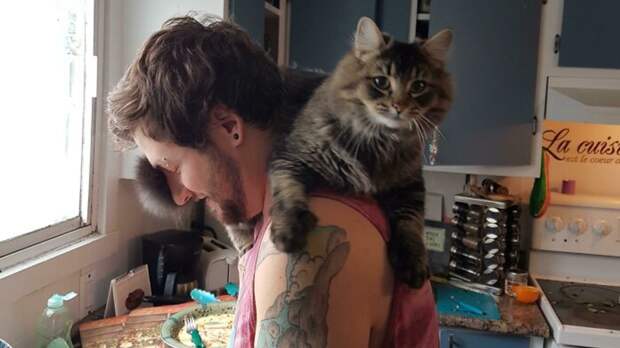 В Сети набирает популярность новый тренд - интернет-пользователи делают фото с домашними животными на плечах, сообщает портал Bored Panda.