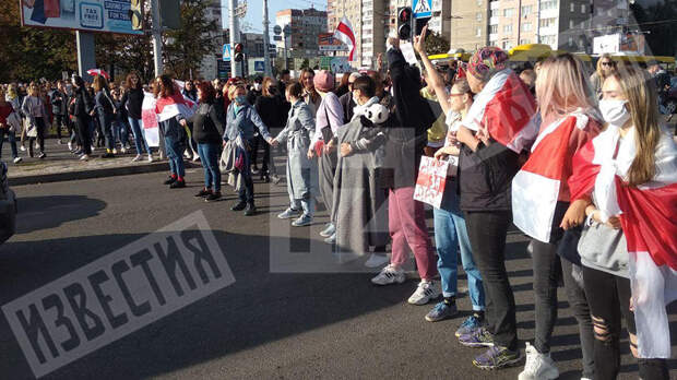 19 сентября в столице республики прошел женский марш, в нем приняли участие несколько тысяч человек. Девушки и женщины с бело-красно-белыми флагами выстроились в "живую" цепь и перегородили дорогу.