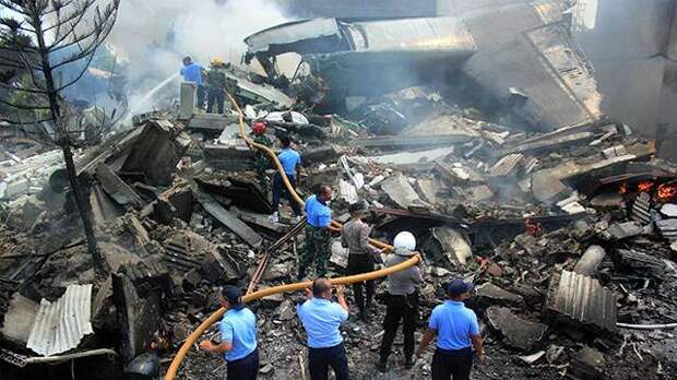 По последним данным, в результате авиакатастрофы военно-транспортного самолета погибли 113 человек, в том числе 12 членов экипажа, передает РИА "Новости" со ссылкой на заявление главкома ВВС страны Агуса Суприятна.
