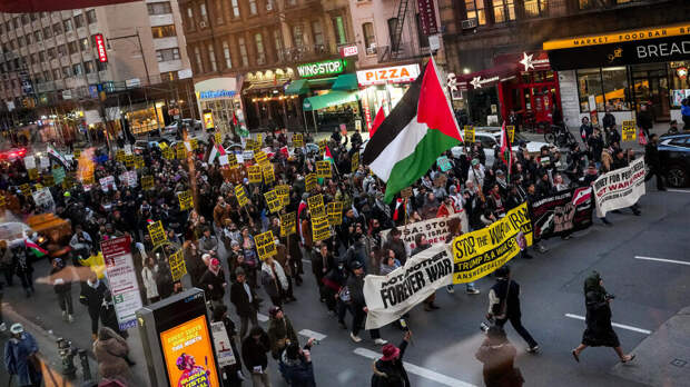 Тысячи человек прошли маршем и по Таймс-сквер в Нью-Йорке, призывая остановить геноцид в Ливане, по которому продолжает бить израильская авиация.