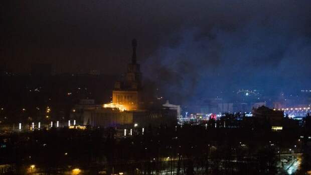 Ранее сообщалось о возгорании строительных лесов на территории павильона. По предварительным данным, площадь пожара составила около 100 квадратных метров.