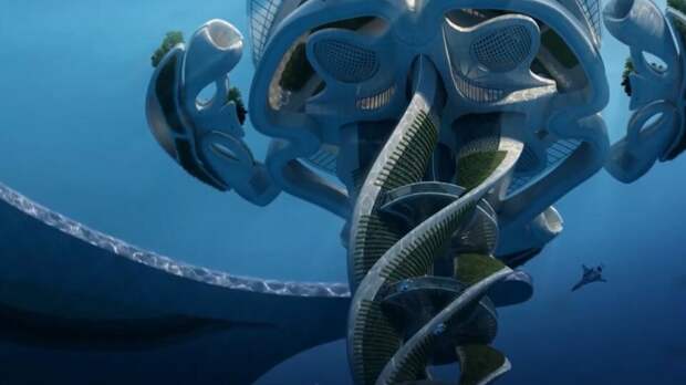 Скриншот видео Получается, подводные города могут не только спасти человечество от гибели, но и решить проблему с перенаселением земного шара. А в будущем морские мегаполисы можно будет строить и в соседних галактиках.