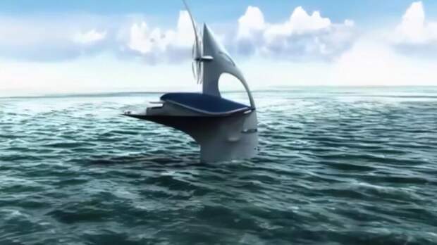 Скриншот видео Корпус станции изготовят из сверхпрочного сплава алюминия и магния, так что она останется невредимой даже при сильном ударе о подводные скалы. Футуристический корабль сможет годами дрейфовать в океане без дозаправки. Необходимой энергией его обеспечат солнечные батареи и установленные на борту ветряки. Вот только морская станция сможет взять на борт всего два десятка человек.