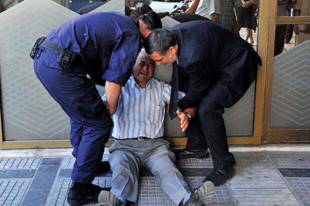 Фотография отчаявшегося греческого пенсионера вызвала бурю эмоций в социальных сетях. 77-летний пенсионер из Греции, который простоял в очередях в нескольких банках в Салониках в надежде снять пенсию своей жены, везде получал отказ.
