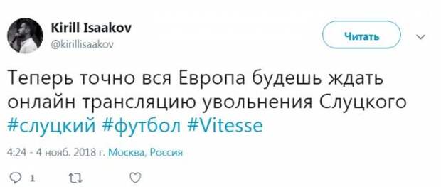 Один из пользователей "Твиттера" выразил ожидание увидеть онлайн-трансляцию увольнения Слуцкого.