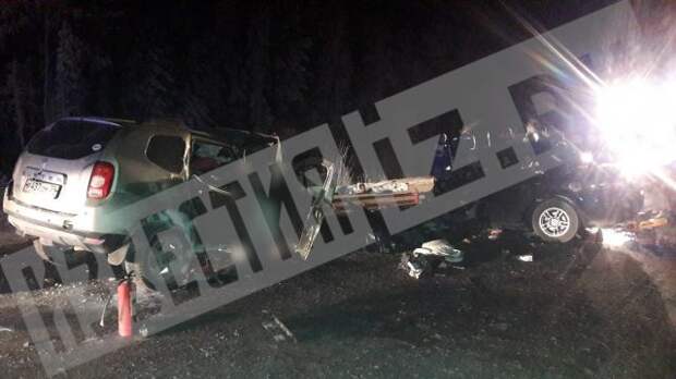 С места страшного ДТП в ХМАО, где погибли 10 человек, поступают первые кадры. На фото видны последствия столкновения двух авто.