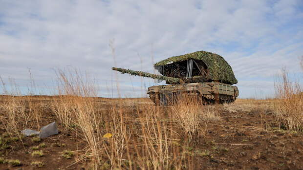 Александр Река/ТАСС "Вот здесь наглядно видно, как работает самодельная внештатная защита. Бойцы заварили стальными листами моторный отсек, здесь поставили так называемые дреды из тросов и сетку натянули. И вот результат – FPV-дрон противника запутался и не взорвался. Вот он лежит", – дополнил корреспондент.
