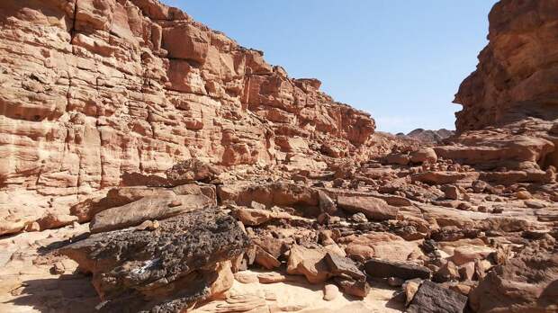 Цветной каньон славится тем, что разноцветный песок на его стенах образует необычные узоры. Это место находится на плато Эт-Тих в горах Синай за 15 км до асфальтированной дороги недалеко от города Нувейба. Протяженность каньона – 5 км, глубина – 25-30 м. Считается, что Цветной каньон образовался в результате землетрясения. По сути, это огромная щель. Здесь можно увидеть камни красного, фиолетового и розового оттенков и необычной фактуры. Однако посещать каньон без сопровождения гида очень не рекомендуется.