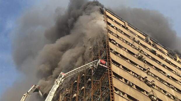 В Тегеране высотный дом рухнул из-за объявшего его пожара. Момент обрушения сняли на видео.