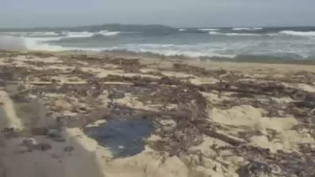 После столкновения двух судов к берегу прибивает все новые пятна углеводородов.