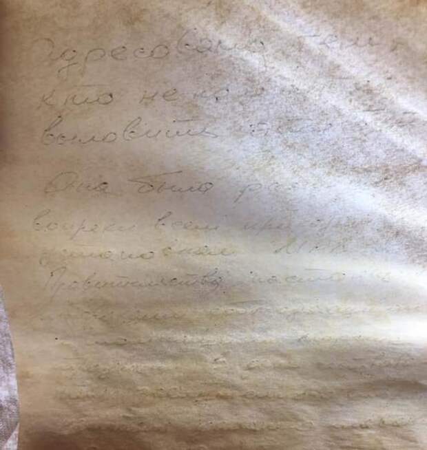 "Адресовано тем, кто не поленится выловить эту бутылку. Она была распита вопреки всем приказам и постановлениям МРХ и правительства настоящими", — следует из послания.