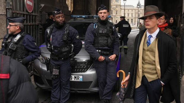 После ограбления Лувра в социальных сетях завирусилась фотография, на который рядом со зданием музея стоят полицейские, а мимо них проходит молодой человек в шляпе и костюме-тройке.