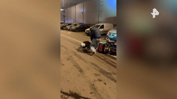 В этот момент по дороге ехал курьер, под колеса которого и попал скейтборд. Мужчина потерял равновесие и упал.