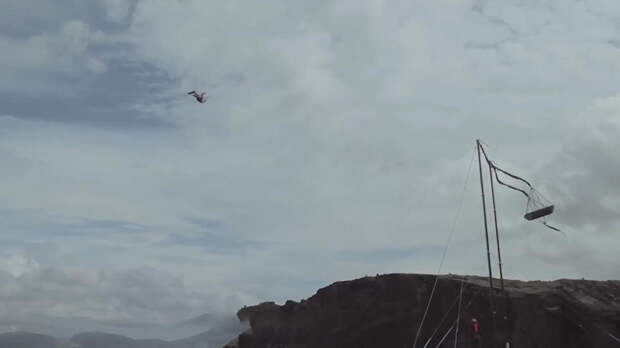 Куда более безопасной кажется такая водная катапульта. На один край огромной воздушной подушки садится тот, кто решил полетать. А на другой ее конец с некоторой высоты прыгают запускающие.
