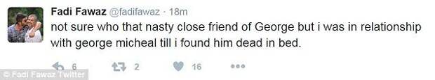 В соцсетях обсуждают сообщения в Twitter любовника Джорджа Майкла о суицидальных наклонностях музыканта. Сообщения появились на странице 1 января, после чего Фади Фаваз закрыл доступ к странице.