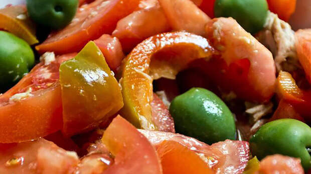 Шаг 4. Украшаем салат оливками и зеленью.