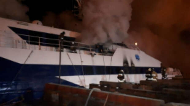 "Пожар начался на одном из теплоходов в 02:44 (01:44 мск). В 04:17 (03:17 мск) объявлен вызов № 2, загорание двух речных теплоходов, находящихся в отстое, на общей площади 400 кв. м", - говорится в сообщении регионального главка МЧС.