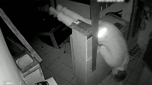 В Красноярске за неудавшуюся кражу перед судом предстанет воришка, возомнивший себя настоящим ниндзя. Вот он, словно змея, вползает в разбитое окно пиццерии, правда, не удержавшись, падает в груду осколков.