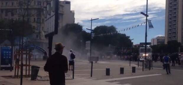 Появилось видео драки украинских и польских болельщиков в Марселе. Правоохранительные органы разгоняли агрессивных фанатов слезоточивым газом и водометом.