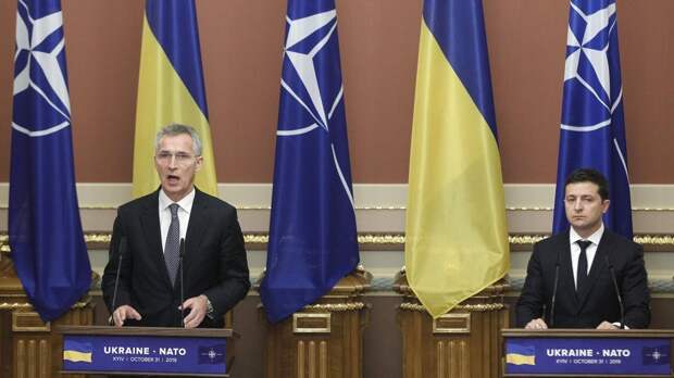 Генсек НАТО Йенс Столтенберг (слева) во время визита на Украину. ТАСС/Zuma И как раз здесь Украине было бы естественно рассчитывать на максимальную поддержку Североатлантического Альянса. Украина постоянно заявляет о стремлении стать членом блока и полностью готова работать в русле задач, поставленных США и НАТО. Более того, Киев заявил о своей готовности воевать, если произойдет «втягивание Украины в международный вооруженный конфликт, в частности, между государствами, обладающими ядерным оружием». То есть, в случае войны НАТО и России Зеленский готов отдать территорию страны под поле битвы. Щедро!