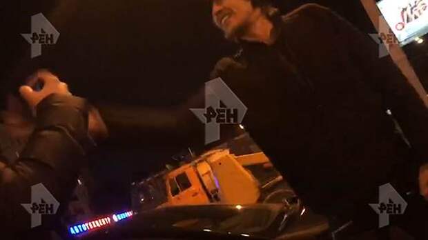 Водитель иномарки Ferrari без номеров, который приехал на место ДТП с участием такси и Porsche на юго-западе Москвы, атаковал корреспондента РЕН ТВ.
