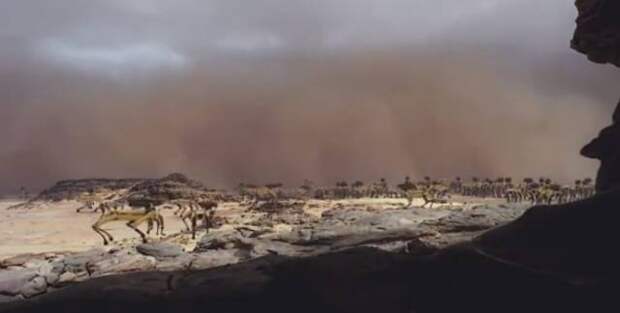 Картина получилась не просто печальная, а удручающая.Безжизненная пустыня, песок, камни - и сотни, тысячи, возможно, миллионы роботов, бесцельно бредущие среди скал и развалин. Однако голос за кадром сообщает, что природа отомстит роботам за погубленных людей - и вот зрители могут наблюдать, как поднимается мощный ураган, надвигается песчаная буря - и часть роботов просто падает на землю, а часть. подхваченная ураганом, улетает вдаль.