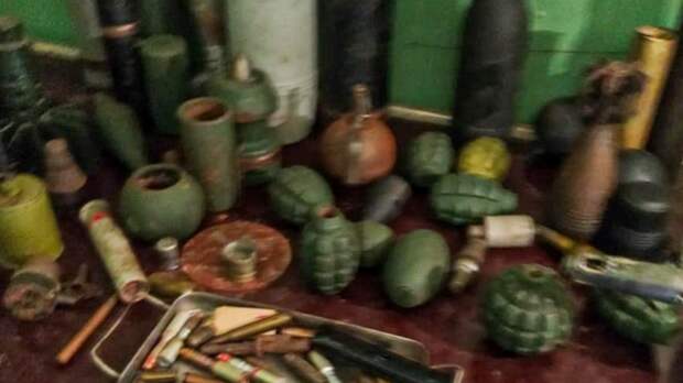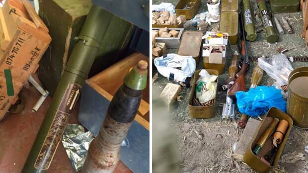 Росгвардейцы изъяли два ручных противотанковых гранатомета, два выстрела ПТУР, снаряды различного калибра, три охотничьих ружья, 23 гранаты, более 12,5 тысяч патронов к стрелковому оружию, а также пять килограммов пороха и военное обмундирование националистов.