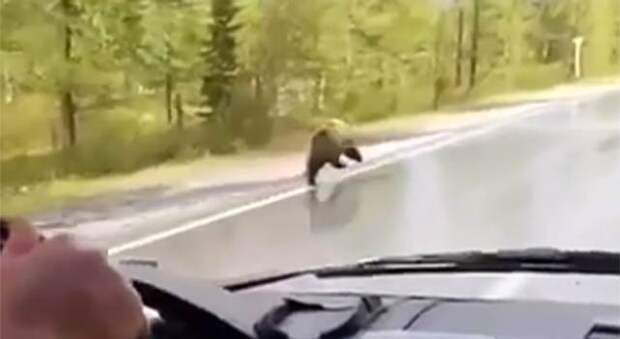 Автор ролика предположил, что встретил молодого медведя — его автомобиль двигался со скоростью около 30 километров в час.