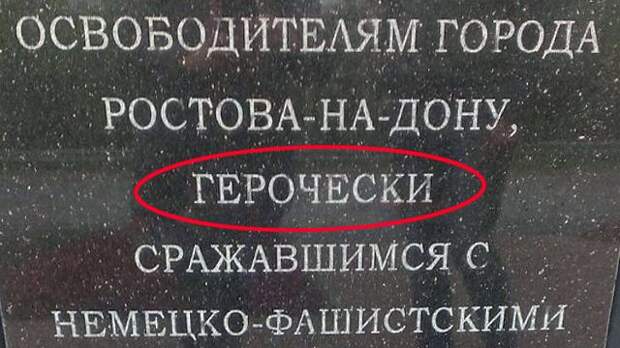 Ростовские власти обещают исправить опечатку на памятнике героям ВОВ. Опечатку в слове "героически" заметили местные жители.