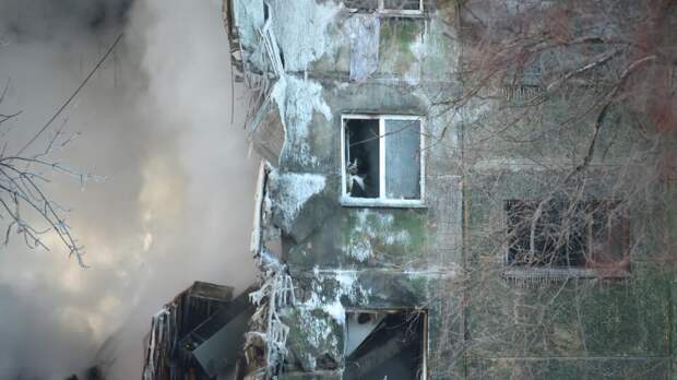 Полыхает пятиэтажка. Объяты огнем две секции. Один подъезд сравнялся с землей.