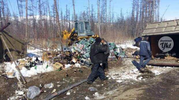 На одной из дорог на севере Якутии перевернулся на бок КамАЗ, груженный спиртными напитками, в основном, пивом.