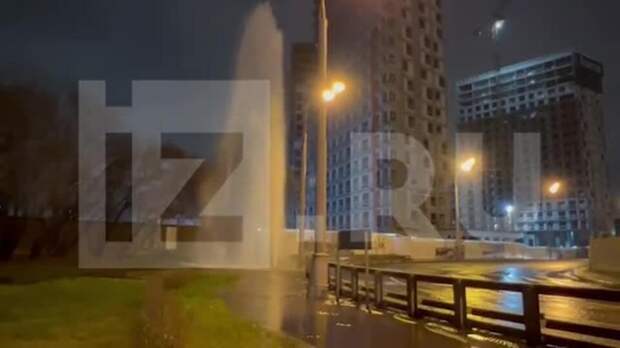 На представленных кадрах видно, что фонтан продолжает бить в ночное московское небо. На движение автомобилей инцидент не повлиял, поскольку машин практически нет.