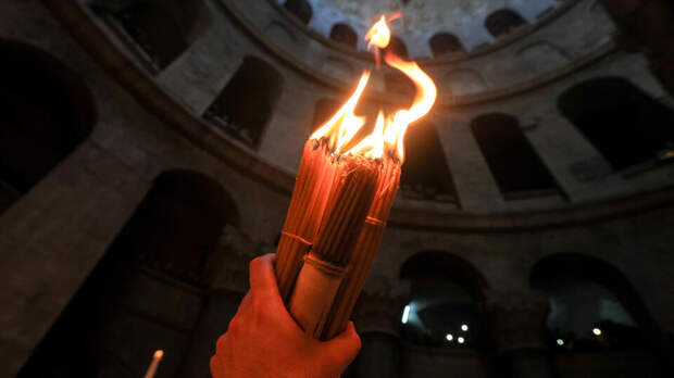 Владимир Смирнов/ТАСС В Иерусалиме в храме Гроба Господня сошел Благодатный огонь. За явлением наблюдали многочисленные верующие, собравшиеся в храме.