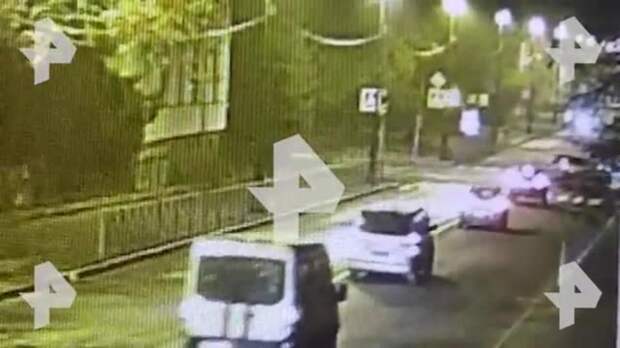 На кадрах виден момент столкновения, после которого машина врезается в светофор.