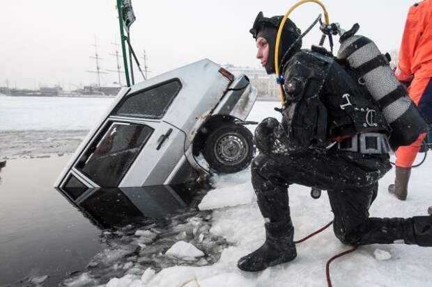 Отмечается, что место происшествия находится в 100 метрах от берега. Глубина реки в том месте, где затонул автомобиль, – 5 метров.