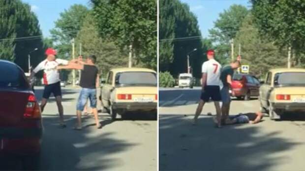 Не проходит и минуты, как поверженный водитель летит на асфальт. Напоследок получает контрольный удар ногой в голову. На этом конфликт исчерпан. Судя по кадрам, пострадавший все-таки пришел в себя. Но, скорее всего, без помощи медиков не обошлось.