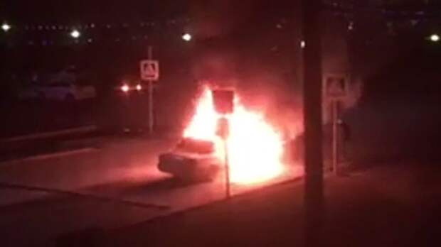 Очевидцы сняли на видео полыхающее авто. Пожар ликвидировали в течение получаса.