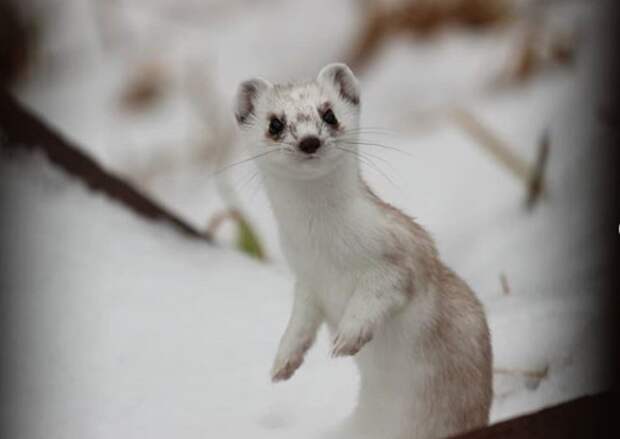 "Горностай меняет окрас из коричневого с белым брюшком на ослепительно белый. И только кончик его хвоста остается неизменно черным", — говорится в сообщении Кроноцкого заповедника на Камчатке.