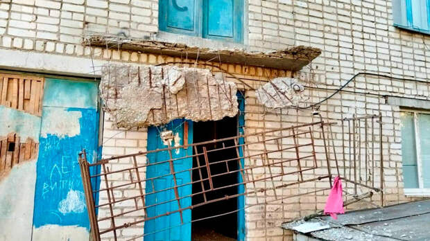 От балкона почти ничего не осталось. Каменная кладка полностью разрушилась, а железный каркас выгнулся.