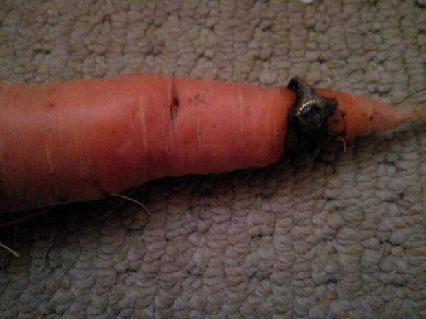 Женщина заметила кольцо, когда начала мыть овощи. По ее словам, морковь проросла сквозь украшение.