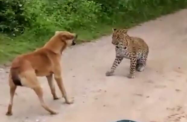 В Сети появилось невероятное видео того, как смелая бездомная собака дала отпор молниеносному нападению леопарда.
