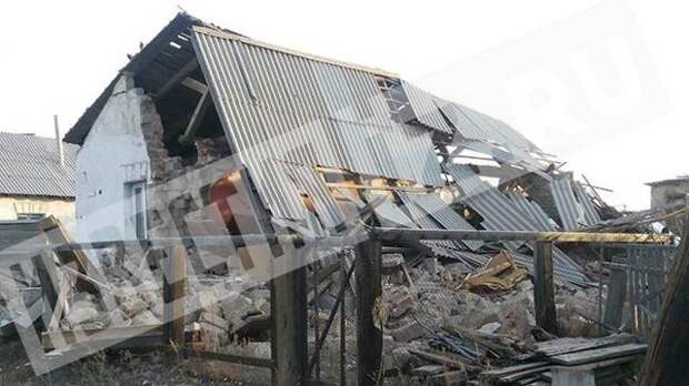 Отмечается, что дом практически полностью разрушен: произошло обрушение стен и кровли.