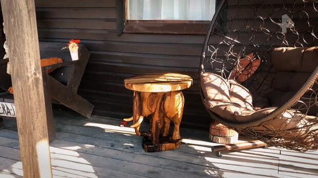 Телезритель Валерий (блог Валера DIY) из Псковской области тоже знает толк в основательной мебели. За основу самоделки мастер взял слона из дубового бревна. Распустил бревно на слэбы, срезал кору, отторцевал и склеил из двух деталей полотно. Для надежного сцепления стянул конструкцию с помощь досок. Когда клей высох, Валерий выровнял поверхность и обрезал в форме круга.
