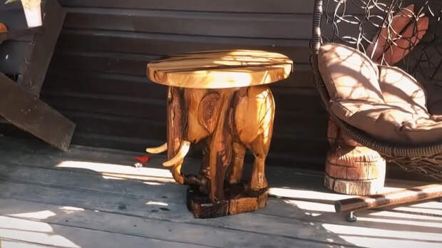 Эксклюзив, как и все, что мастерят эти золотые руки.Стол из слэбов и деревянного слона