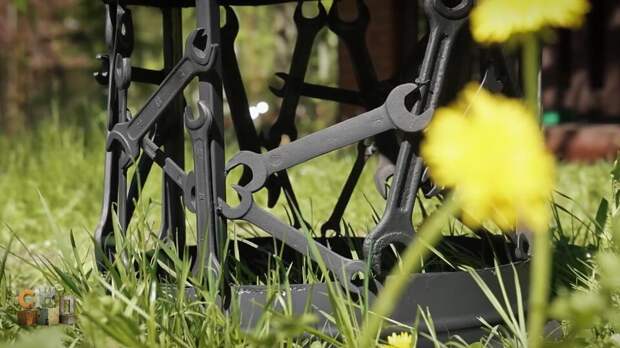 Был когда-то у ведущего Романа Ладнева старый автомобиль, и остались от него рожки да ножки. А если точнее – колесные диски да сумка с инструментами, целый набор гаечных ключей. У мастера такие уже есть, но выбрасывать он не решился – пригодятся для новой поделки.