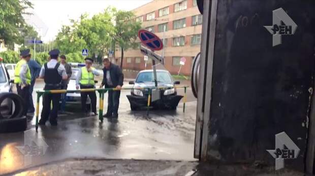 Пьяный водитель протаранил знак, уходя от погони на севере Москвы.